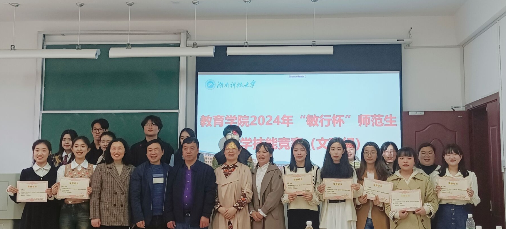 4月13日,教育学院2024年“敏行杯”师范生教学技能竞赛在敏行楼B315、B317成功举行。本次比赛由教育学院副院长张进良主持,邀请到了湘钢一中、湘潭县云龙中学、九华和平科大小学三所学校学科教育专家和我院教师共10人担任评委,比赛分文科组和理科组进行,教育学院2021级、2022级四个专业共33名选手参加决赛。比赛分教育问答和片段教学两个环节。参赛选手需提前准备好完整的教学设计方案和多媒体课件,并现场抽题完成教学问答、片段教学两个环节,评委老师根据选手的综合表现进行评分。