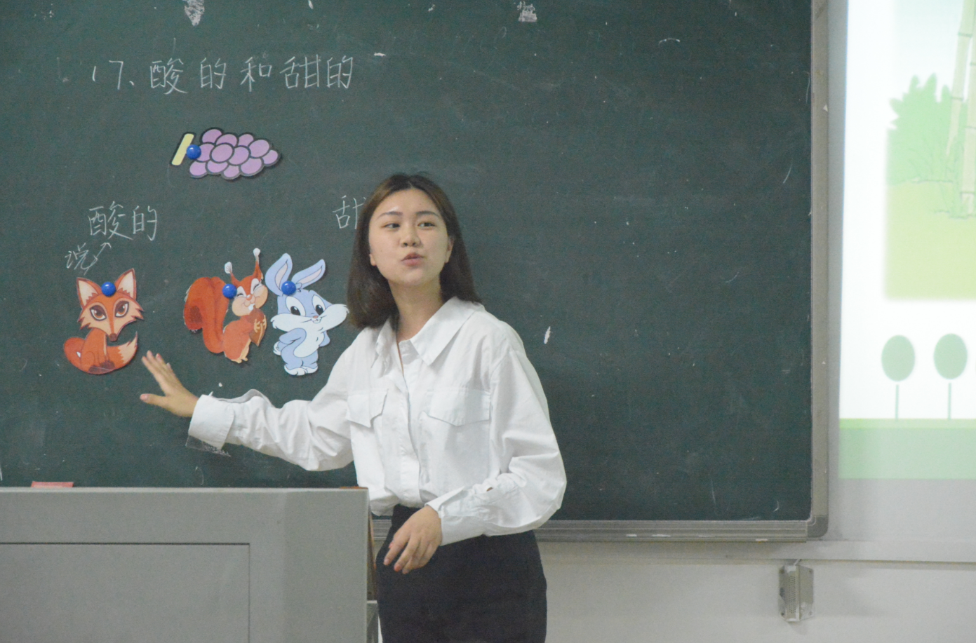 比赛包括教学设计、多媒体课件制作、片段教学、教育问答四个环节。比赛过程中,每位选手都进行了精彩的讲课。文科组2015级教育学1班贵钰宁同学用生动的英语教学,紧紧抓住学生的学习兴趣,达到了非常好的教学效果;2015级教育学2班邹枭同学的《圆明园的毁灭》,通过从不同的角度进行分析来引发学生思考,调动了学生的积极性,让学生对中国的历史文化有了一定的了解。理科组2015级小教1班曾欣同学,她先用一张地图来告诉我们用不同的颜色代表城市,然后通过颜色的搭配来引出数字的搭配,教学生动;2015级小教1班郑巧玲把未知转化为已知,通过将圆进行切分转化成已学的长方形的面积,进而推算出圆的面积,教学目标明确。