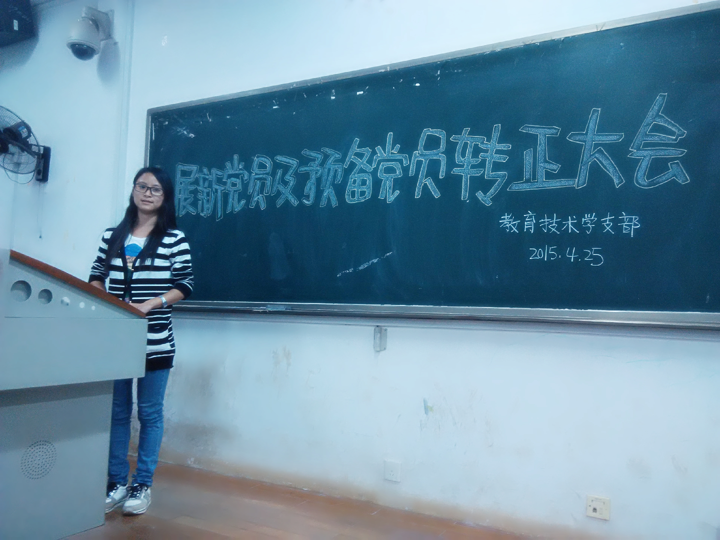 2015年5月10日晚,教育信息技术学系学生党支部全体党员齐聚第八教学楼103教室,召开了本学期的支部大会。会议主要围绕接收新党员以及预备党员转正两大重要议题进行。此次大会由本学系支部书记白力芳同志主持。