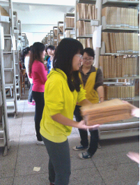 应心支部副书记周维同志积极征集支部志愿者、安排工作,并向其他支部发出求援。活动分批进行,党员同志都非常主动、积极,参与多次书籍整理工作。王文超同志激动的说:“为人民服务是中国共产党的宗旨,作为一名大学生党员,我们要将它落到实处”。她很感谢图书馆给了她这次能为人民服务的机会。