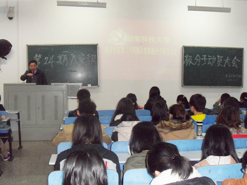 2013年3月12日晚7:00,我院于第八教学楼1-1教室召开第二十四期入党积极分子培训动员大会,出席此次大会的有教育学院党委副书记、分党校校长、学生党建工作委员会书记王伟清同志,学院本科生支部书记胡银华同志,以及教育学院党建会各部长、各学生支部副书记。