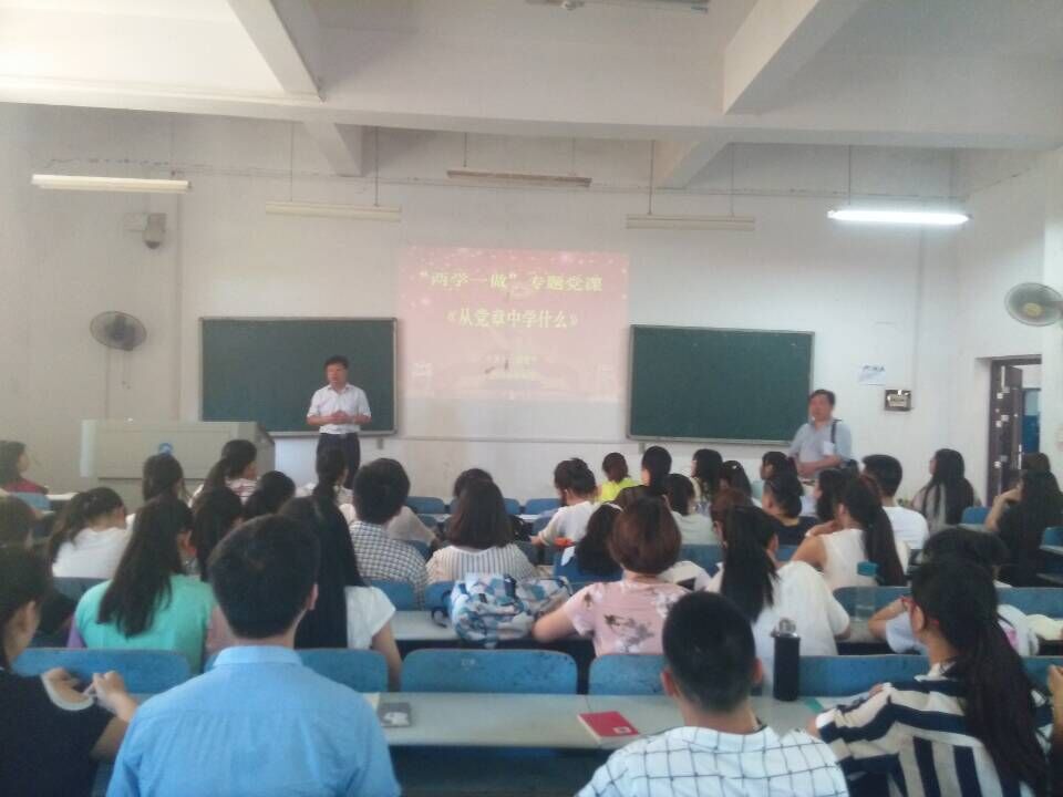 2016年6月23日,教育学院全体党员在第八教学楼1-1教室共同学习“两学一做”专题党会——《从党章中学什么》。本次学习由教育学院党委书记谭建平书记给党员同志们授课。