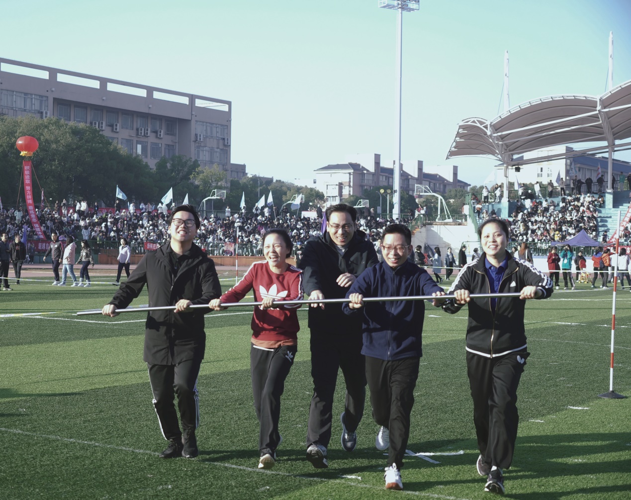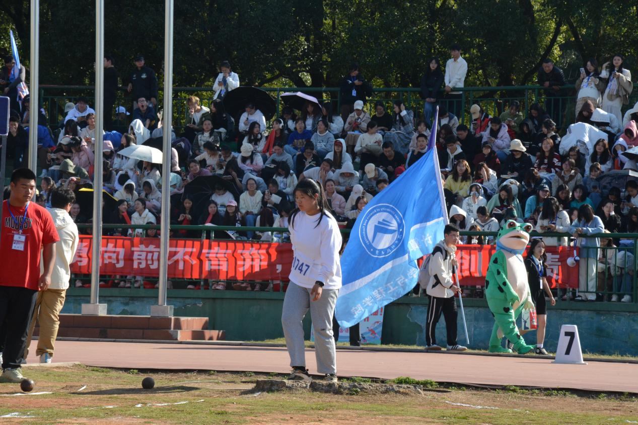 秋日暖阳,赛场上运动健儿们热血澎湃,观众席上的同学们为其激情喝彩。笑声、掌声、欢呼声此起彼伏,奏出运动之歌激情昂扬的音符。