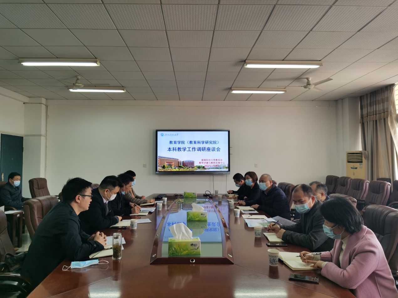 为深入贯彻落实学校第三次党代会精神,大力实施“353”战略,向创新型应用人才培养全面转型,切实提高本科人才培养质量,3月29日上午,湖南科技大学副校长贺泽龙、教务处处长吴亮红、教学评建与教师教学发展中心主任周险峰等一行6人来院调研,学院党委书记李炳煌,党委副书记刘婕,副院长谭千保、陈京军等人参加调研座谈会。