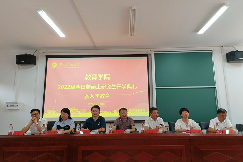 2022年9月18日下午,教育学院2022级全日制硕士研究生开学典礼暨入学教育在湖南科技大学雨湖校区(昭潭书院)教学楼102教室隆重举行。典礼由学院党委书记李炳煌主持,研究生院院长李海萍、教育学院院长谭千保、副院长陈慧青、张进良、陈京军、党委副书记刘婕、各专业领域负责人、各系系主任、研究生办负责人、导师代表、新生辅导员等出席,新老生代表及22级教育学院全体研究生新生与会。