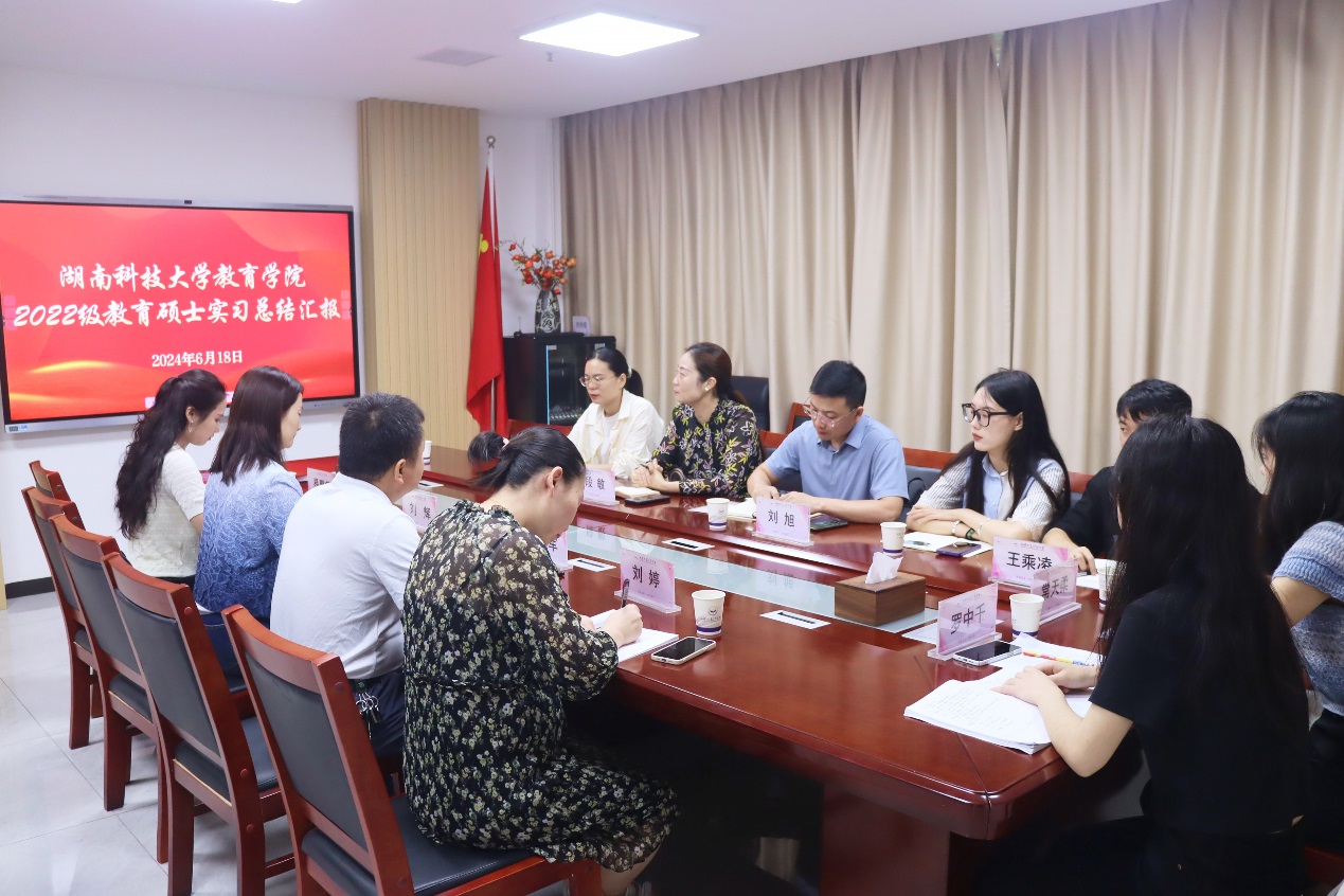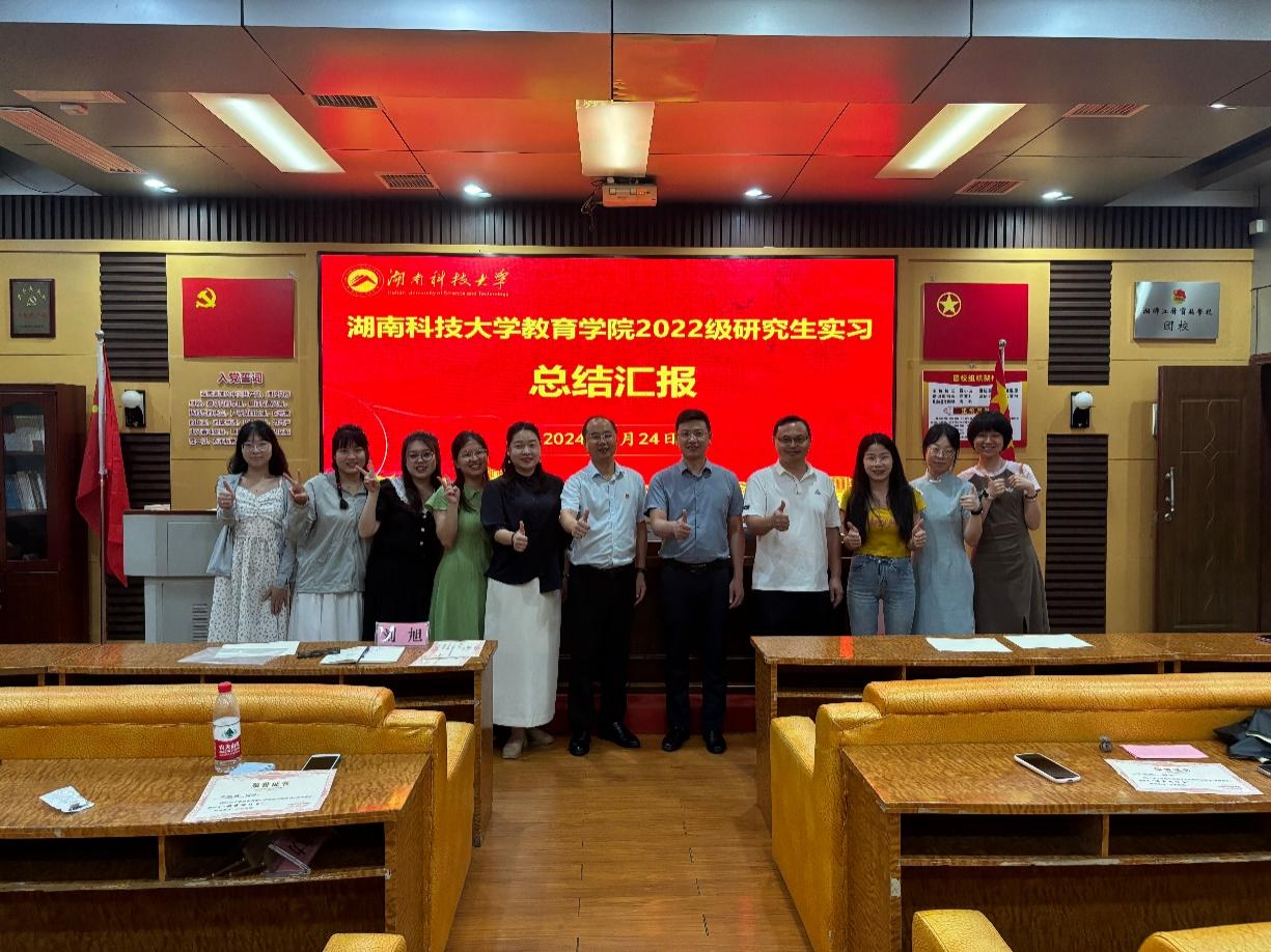 6月18日-24日,湖南388vip太阳集团2022级教育硕士(心理健康教育)研究生实习汇报总结大会分别在湖南科技大学附属九华江声中学和湘潭江声实验学校举行。教育学院心理健康教育方向负责人刘旭、湘潭市雨湖区心理健康教研员段敏、九华江声中学校长刘辉、九华江声中学副校长张卫军、江声实验学校副校长张赞湘、江声实验学校教师发展中心主任鄢国庆、江声实验学校心理健康发展中心主任张熔锋以及全体实习生指导老师和实习生参加。