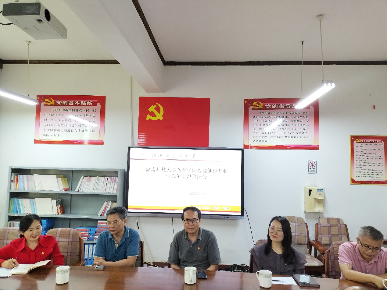 2023年5月31日下午,教育学院2021级教育硕士(心理健康教育专业领域)研究生教育实习总结会在湘潭市第三中学办公楼401会议室举行,教育学院党委书记李炳煌教授、应用心理学系刘成伟主任、教育学院14名实习生及带队老师,湘潭市教育科学研究院教研员周小滋老师,湘潭市第三中学全体党政班子成员与会。总结会由湘潭市第三中学副校长唐亮主持。