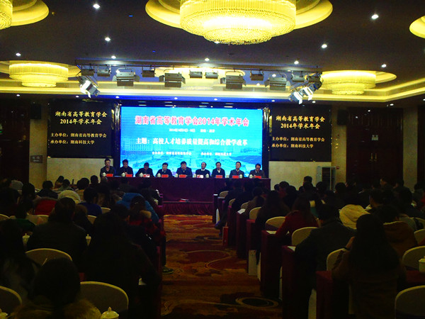 12月12日上午,由湖南省高等教育学会主办、湖南科技大学承办的湖南省高等教育学会2014年学术年会在湘潭华银国际大酒店六楼湘潭厅开幕。省教育厅高教处处长唐利斌、湖南省高等教育学会会长赵跃宇、湖南师范大学副校长刘起军、长沙理工大学副校长叶泽、湖南农业大学副校长曾福生、南华大学副校长阳小华以及湖南科技大学副校长施式亮出席开幕式,湖南科技大学李伯超校长出席并致欢迎辞。开幕式由湖南省教育科研工作者协会副会长高协平主持。