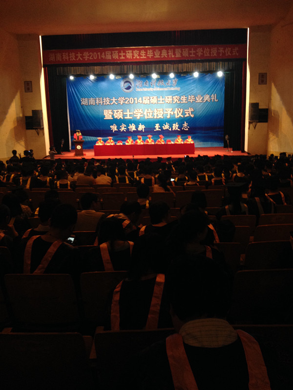 2014年6月20日上午9点30,湖南科技大学在南俱隆重举办了2014届硕士研究生毕业典礼暨硕士学位授予仪式。教育学院领导与毕业生共同见证这一神圣的时刻。