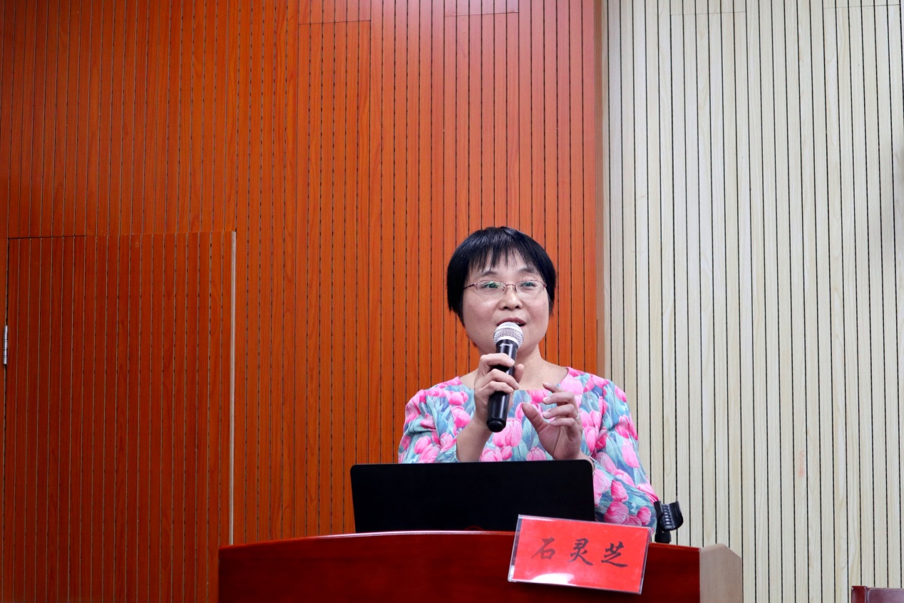 石灵芝老师以其从教32年丰富的教学经验和扎实的叙事能力,围绕“静心”、“慧心”、“慈心”三个关键词,将一个个关于亲人、朋友、学生的故事娓娓道来。她分享了参加学校思想政治理论课教师座谈会的所闻所感,并以“回忆中的李老师”的事例进行引入,阐述了自己的从教初心,以及在初心坚守下心境的澄明、心神的笃定和心灵的安顿。她指出,教育是一路温情的陪伴,是心灵对心灵的滋养,这一过程从心开始。其一,静心(静心学习、静心引领)。静心丰盛自我,师者之爱会自然而然流淌;静心阅读学习,又使得爱的等级更高、生命力量最足。其二,慧心(静能生慧、让爱智慧)。做教育,光有爱是不够的,还需要智慧。而要成为智慧型教师,则需要睿智、机智、理智、明智、大智和德智。其三,慈心(成就自己、成全他人)。教育使人慈悲,教师需德智双修,有宽厚仁爱之心,成就自己而又成全他人。她表示,在用最初的心做永远的事中,她感受到了友谊、薪火相传、施与授的转换与平衡及生命的伟大与不易。最后,石灵芝老师用《多一克温暖》勉励大家,好老师是有温度的,我们应“看到”、“唤醒”和“预见”孩子,朝成为“四有”好老师这一目标而不懈努力。