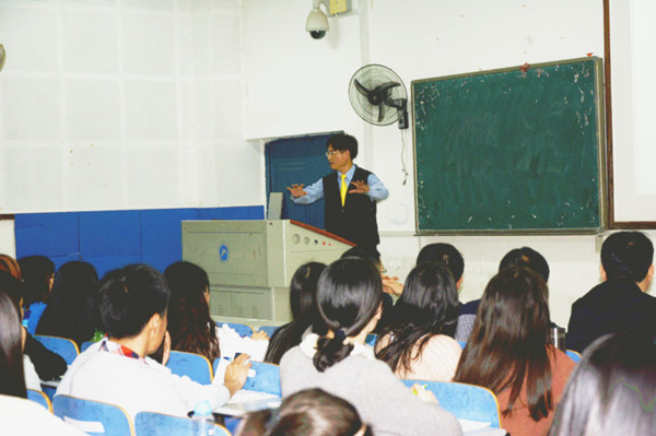 简成熙教授用随和幽默的开场白拉近了与在场听众之间的距离感,为讲座增添了一丝活泼。他通过介绍自我学习经历及台湾地区教育系学生的学习情景、职业走向开启话题,并与在座同学就“是现代人还是古代先人更有道德品质”这一问题进行互动,用几个小故事深入浅出地从“服膺应有的秩序,遵守既有的规范;思考或批判既定的道德规范;关怀、慈悲与同理心;圆融(而不圆滑)的生活智慧;品德或品格新解”五个维度讲述了什么是道德以及既定的道德规范存在哪些反思点。他指出:“道德是关怀、慈悲与同理心,其主要是用来规范自身,不是用来绑架他人的。”他主张大家应以宽容的态度对待不同主体选择,用圆融的方式处世。简教授生动而幽默的讲解不时赢得师生们的掌声。
