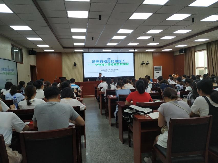 2018520日下午,湖南师范大学教育科学学院博士生导师刘铁芳教授做客“明湖教育论坛”,为我院师生带来了题为“培养有格局的中国人——个体成长的意蕴及其实现”的学术报告。报告会由教育学院院长李海萍主持。
