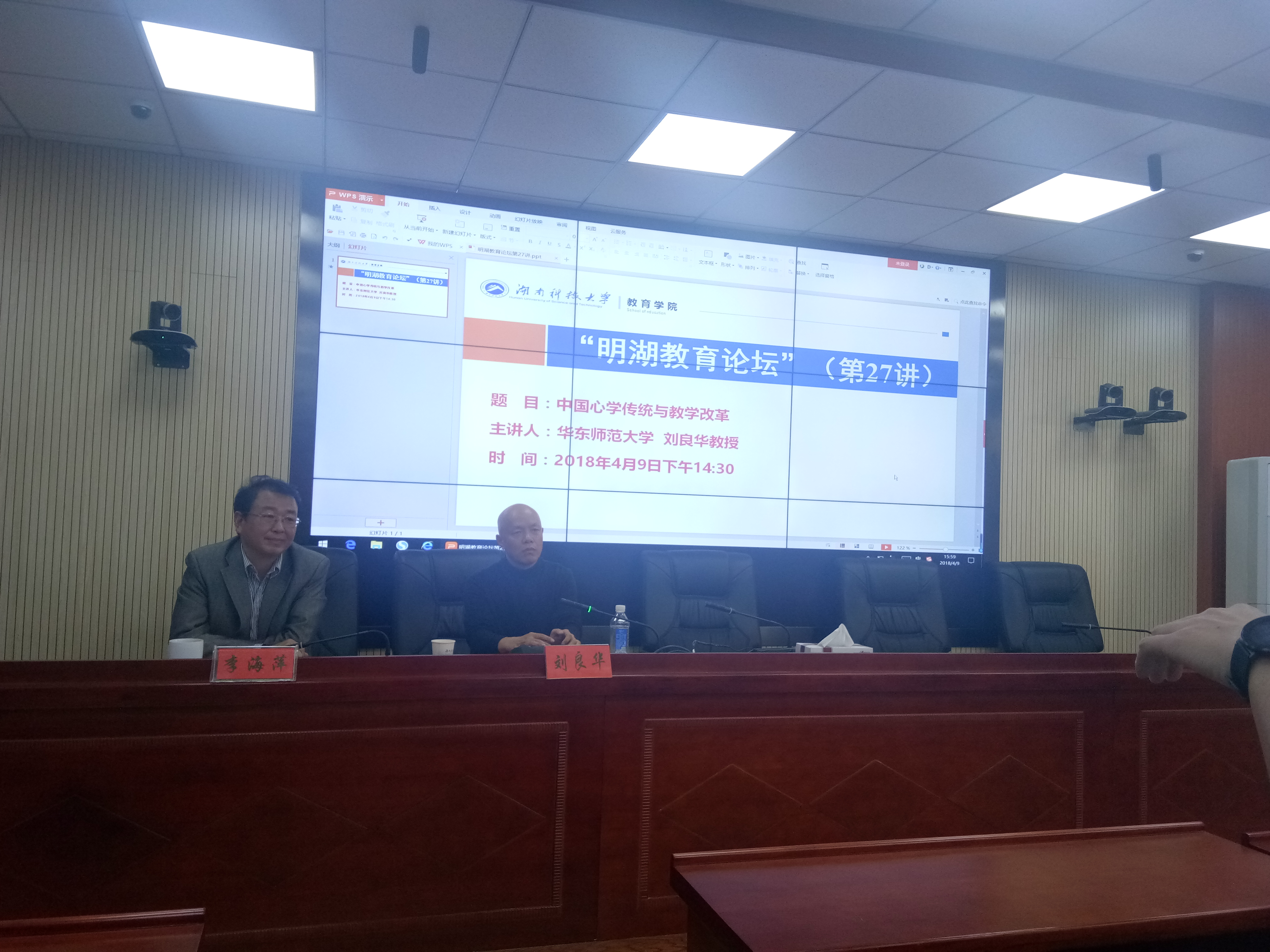 2018年4月9日下午,华东师范大学课程与教学研究所教授、博士生导师刘良华做客“明湖教育论坛”,在教育学院三楼报告厅为我院师生带来了题为《中国心学传统与教学改革》的学术讲座。教育学院教师代表、研究生和本科生代表到场聆听,讲座由教育学院院长李海萍主持。