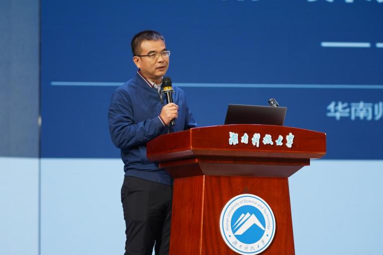 华南师范大学职业教育学院院长刘志文教授就《赋能新质生产力:高等职业教育改革新使命》进行报告。他首先高度肯定了湖南科技大学成立职业技术师范学院的战略眼光,并指出学院未来需要依托教育博士专业学位授权点来定位育训高水平、高层次、高素质的职教师资。接着,他对新质生产力发展的背景、内涵以及高职教育改革的新挑战和新使命进行了深入阐述,并着重强调在教育科技人才一体化的背景下,职业教育除了在提供产业人才之外,还应在教育公平和社会发展上做出重要贡献。