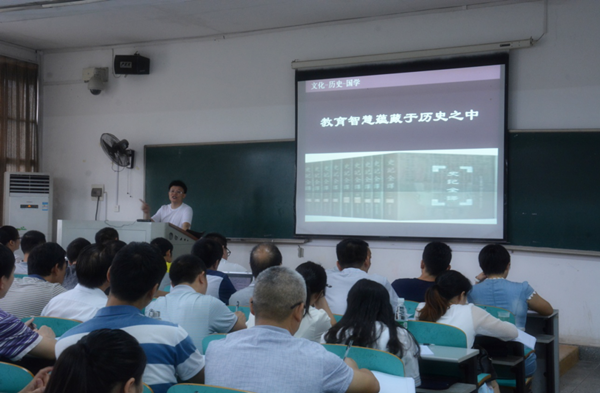 上午8点半,湖南省特级教师、教授、博士生导师、教育部校长系列、教师系列“国培专家”刘建琼给学员做了题为“教育智慧蕴藏于历史之中”的培训讲座,主要从教育工作者对待历史的态度标志其成熟程度、中国“儒家”之教师观以及湖湘教育的演绎与孕育三个方面回顾了从东汉至近代的湖湘名人教育、名人办学、书院教育的历史,讲述历史对于现代教师教学的重要意义。同时,面向现代教育现状向学员们讲述了何为师道尊严,教师如何成长,教师如何教学。刘教授用自己的所见所闻告诉广大通用技术教师,即便是理科教师也要学习文史知识,文史对理科的教学也能提供建议和方法。广大学员对此深有同感,下课之后团团围住刘教授,纷纷请刘教授解惑。