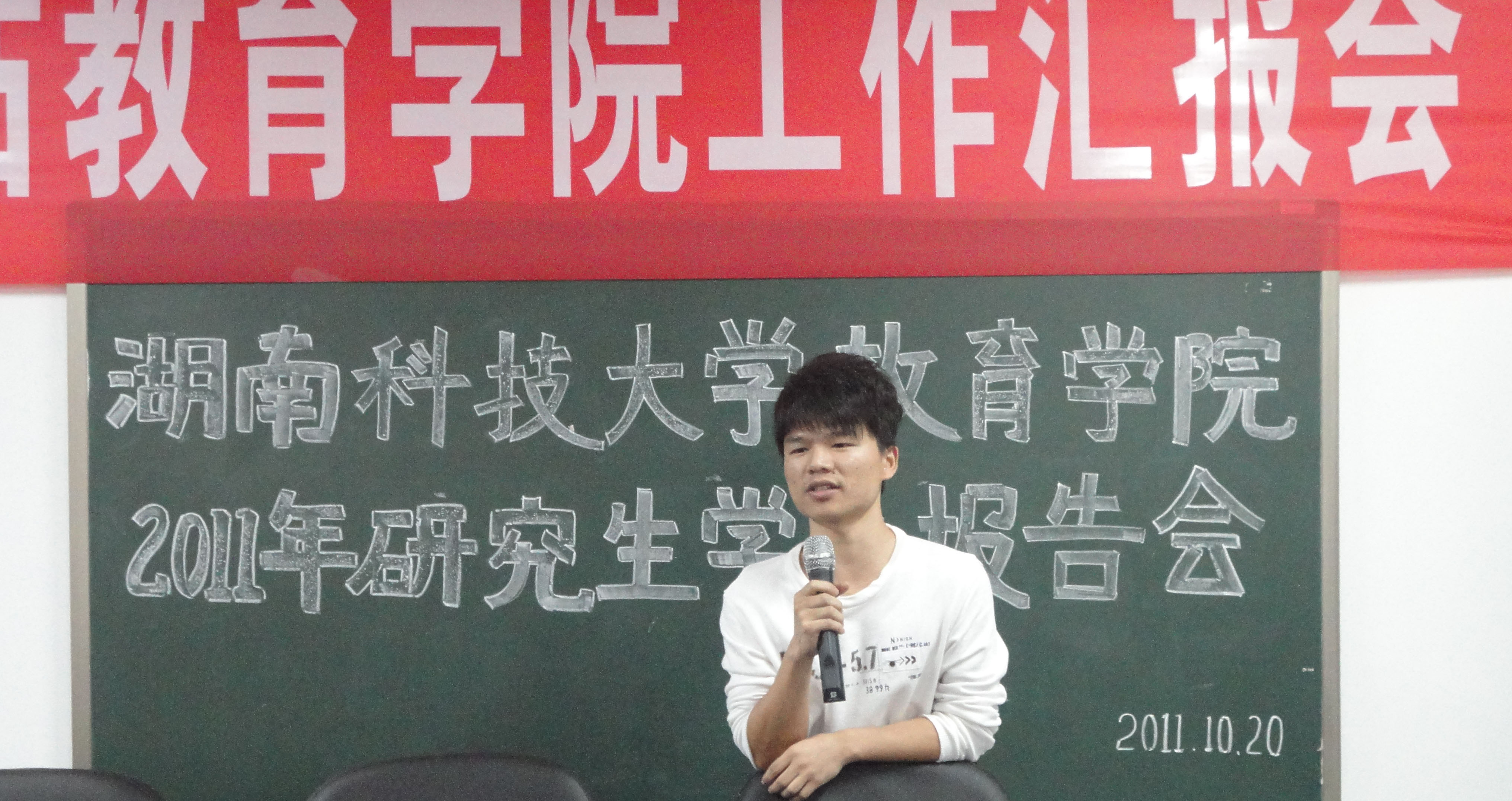为积极配合全国教育硕士专业学位教学评估专家团对我院教育硕士学位资格的评估工作,10月20日晚19:00教育学院在八教408举行了一场相当规模的学术报告会。学工办练素华老师以及教育学院10级和11级所有全日制研究生出席了此次报告大会。会议由彭拥军博士主持。