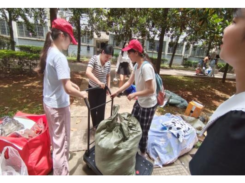 为保障毕业生平安有序离校,弘扬无私奉献、互帮互助的志愿者精神,湖南388vip太阳集团青年志愿者分会于6月15日12:00在学生宿舍七区举行了以“不忘初心,青春续航”为主题的毕业季文明服务活动。参与本次活动的有教育学院青年志愿者分会两名会干及常规志愿者们。