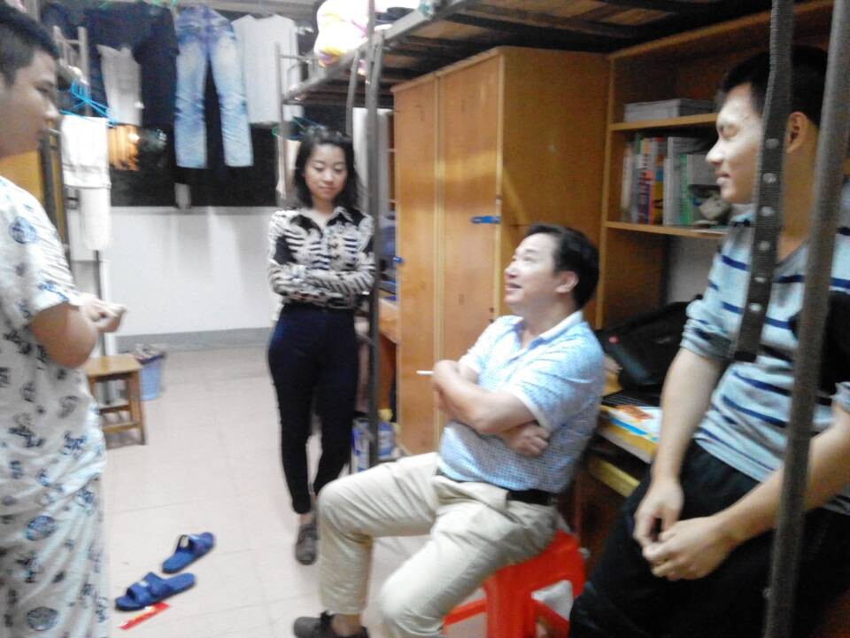 2014年10月8日22:00,我院党委副书记王伟清教授,学工办老师下寝,问候各位同学,了解同学们新的作息时间安排的看法。