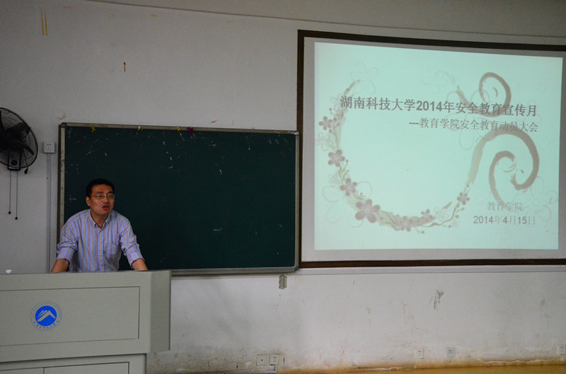 2014年4月15日15:00,为宣传安全教育我院于八教1-3开展的针对全院学生的安全教育动员大会。学工办主任李涛老师出席本次动员大会。