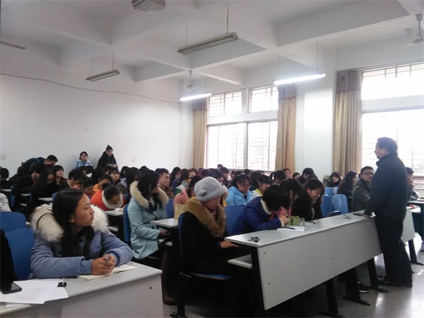 2015年3月7日是湖南科技大学开学的第一天,下午16:00整,教育学院于第八教学楼105室召开了新学期的第一次学生干部例会,党委副书记王伟清、学工办老师胡银华、尹琼芳、练素华、滕茜茜出席了会议。