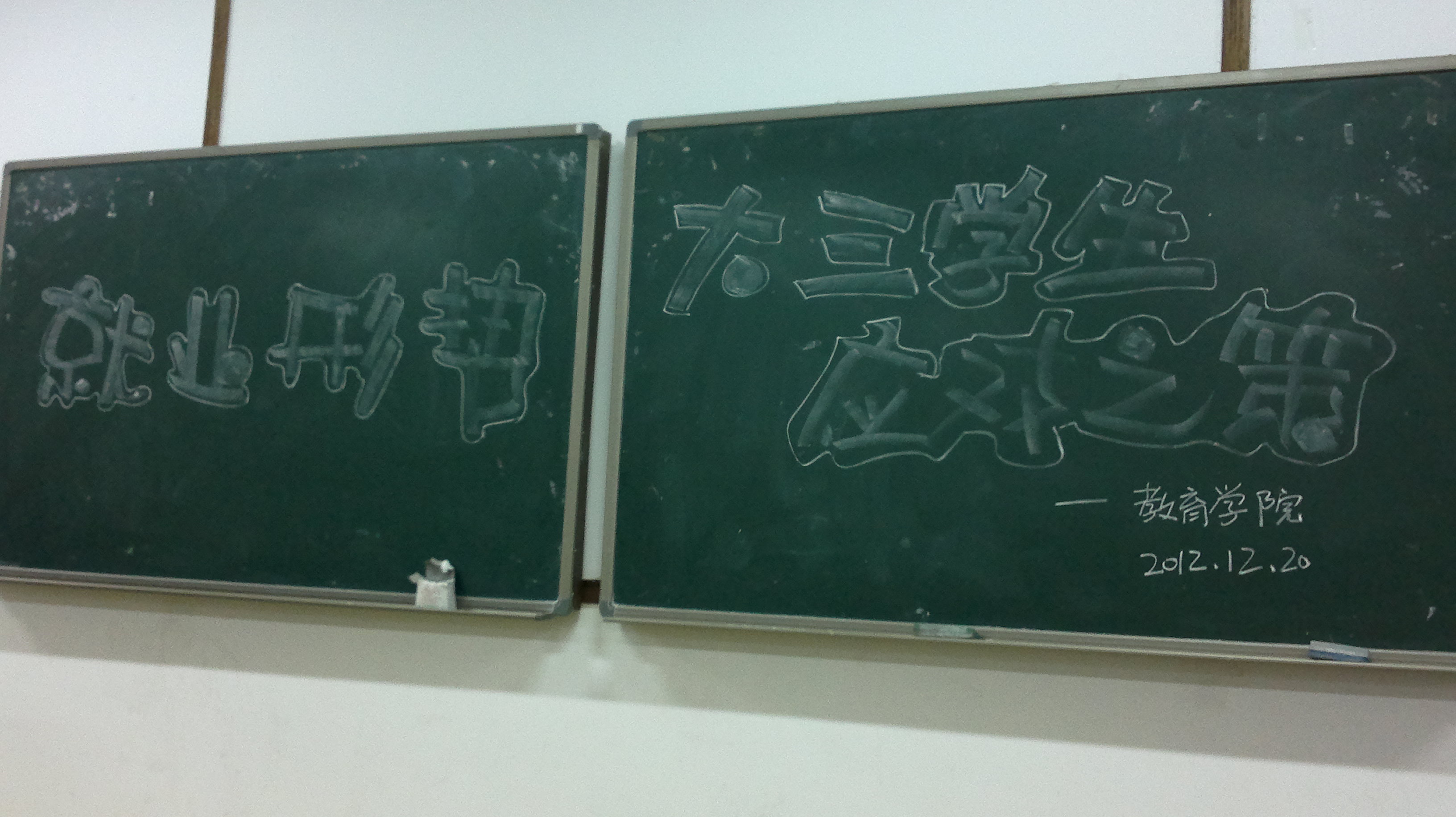 “把握每一次锻炼的机会,提高自己的职业素质。”2012年12月20日晚,教育学院党委副书记王伟清,对我院10级同学进行了就业形势分析讲座。