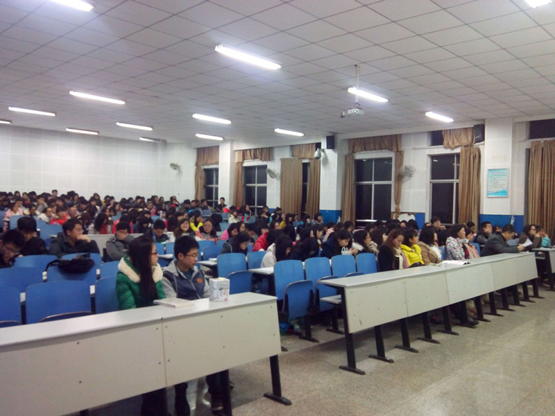 “为什么上大学?在大学学什么?将来要干什么?”李涛连提三问,引发同学的思考,有的学生放下手中的手机,看着窗外的风景;有的学生低头沉思拿出笔在纸上仔细记录。接着他引用最近热播剧《来自星星的你》的“教授”公认的高富帅形象以及特殊的超能力引得全场一片欢声笑语。他告诫学生,不管做什么事,都要努力。“要持有人无我有,人有我优的心态,用不同的方式来收获不一样的风景”。