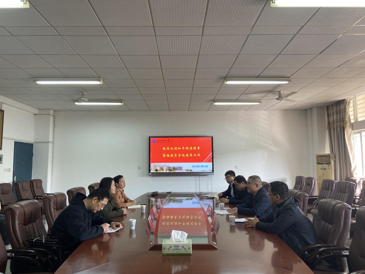 11月24日下午15:00,湘潭经开区和平街道领导一行莅临教育学院商讨校地合作事宜,会议在第八教学楼208会议室举行。和平街道党工委书记李熙,党工委副书记周桂波,党工委委员、办事处副主任杨建辉,党工委委员、组织委员杨稳桥,湖南388vip太阳集团副院长陈慧青,党委副书记刘婕,学工办主任李涛出席会议,教育学院团委学生会主席杨淑雯、主席团成员康玉婷,社团管理部副部长詹卓铭、董与佟到场参加。