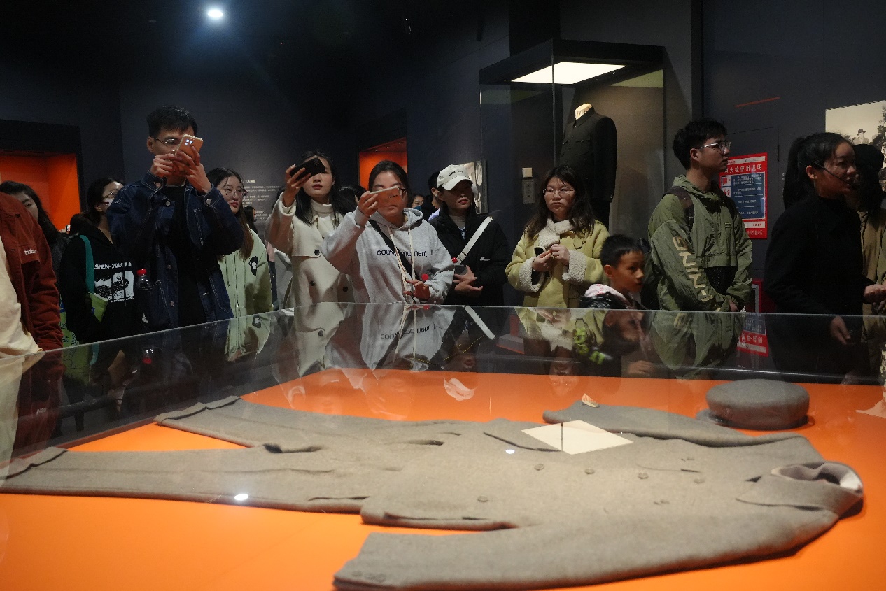 同学们来到韶山毛泽东纪念馆。这里全方位的展现了毛泽东同志的生活、学习和办公状态。同学们静心凝视、驻足观赏,从泛黄的照片和纸稿中,感悟伟人坚定执着、不屈不挠的革命精神;从尘封的书籍里,感悟伟人博学多才、广博深厚的文化底蕴;从珍藏的遗物中,感悟伟人无私奉献、一心为民的赤子情怀。