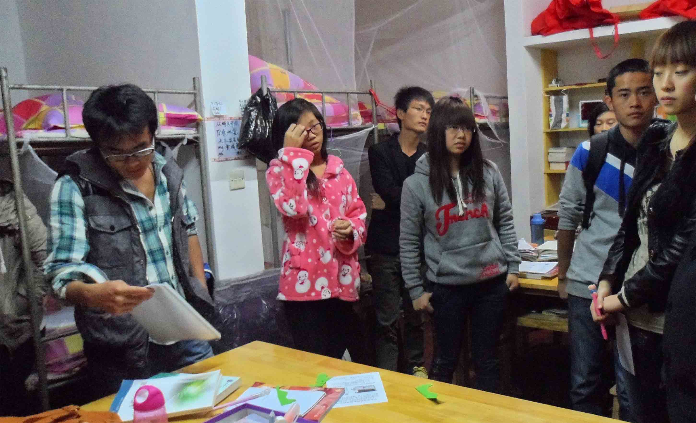 “同学们好,我来看看你们!为防止对你们人身及财产安全造成严重损失,你们千万不要使用像热得快等大功率电器!”在五区新生宿舍内,王书记殷殷嘱咐道。同时,书记老师们也严格的态度对所查宿舍进行安全防火意识进行宣传,告诫大家要注意宿舍的用电安全,防患于未然,并且严厉禁止使用热得快等大功率,对于部分正在使用的宿舍,书记老师们毫不留情的给于没收。其次对于新生,书记老师们也细心一一询问是否习惯学校生活叮咛穿着注意保暖等。