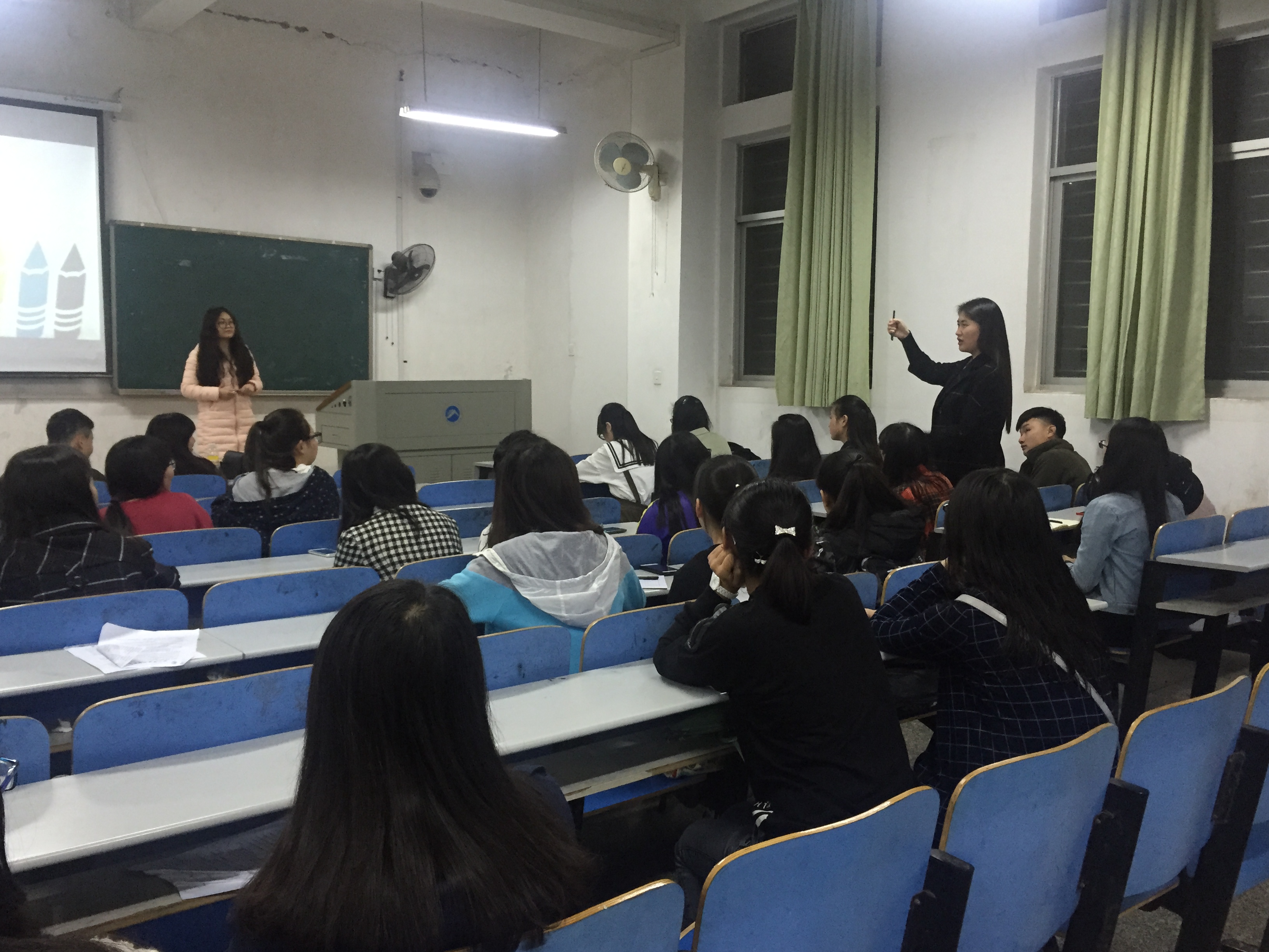 2016年4月8日晚19时,湖南科技大学留守儿童心灵呵护志愿团第二次志愿者主题培训于八教1-6固时开讲,志愿团主要干部和志愿者皆数到场,技术副总监谢佳琼作为培训主讲人针对助手、观察员分类职能进行具体培训说明。