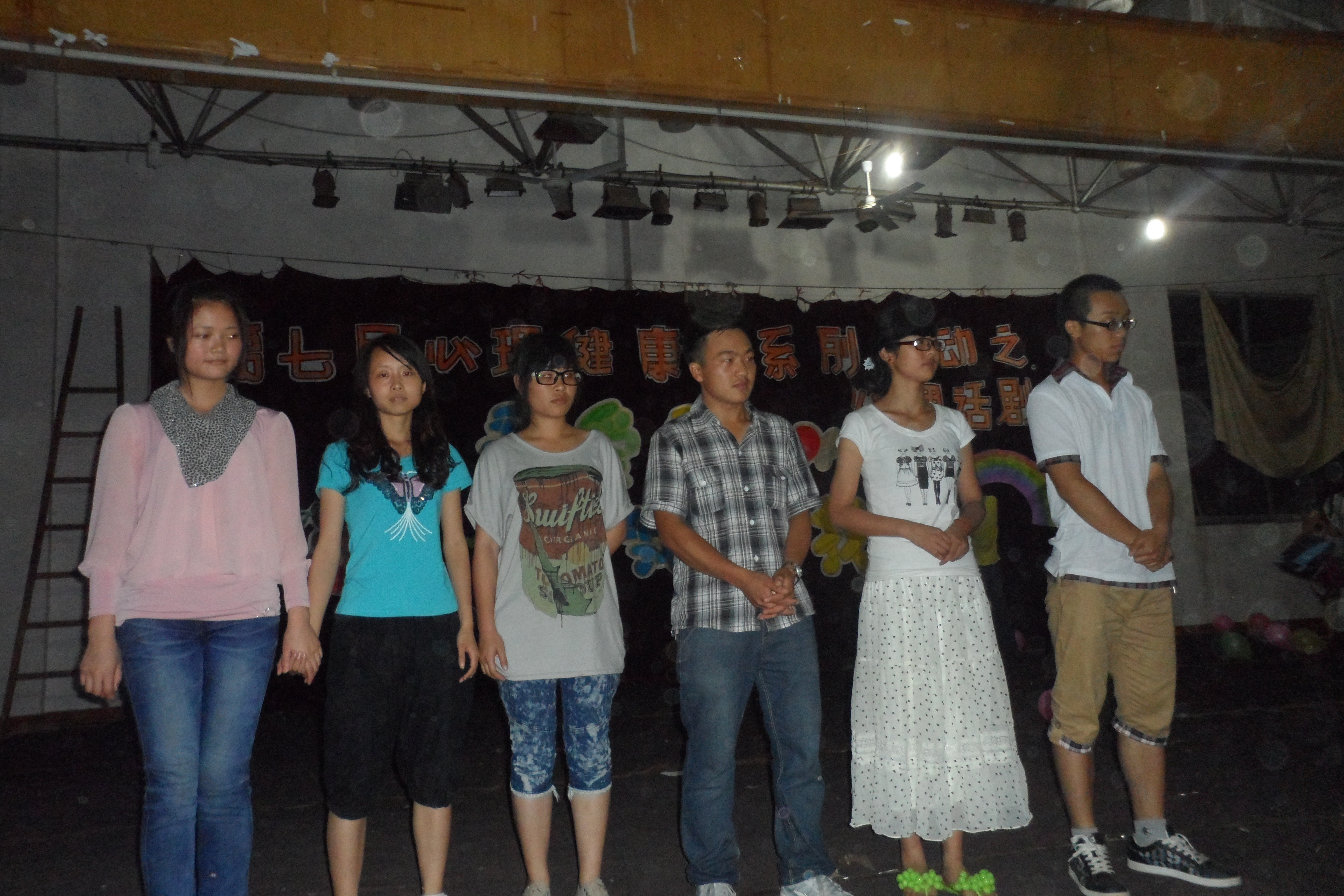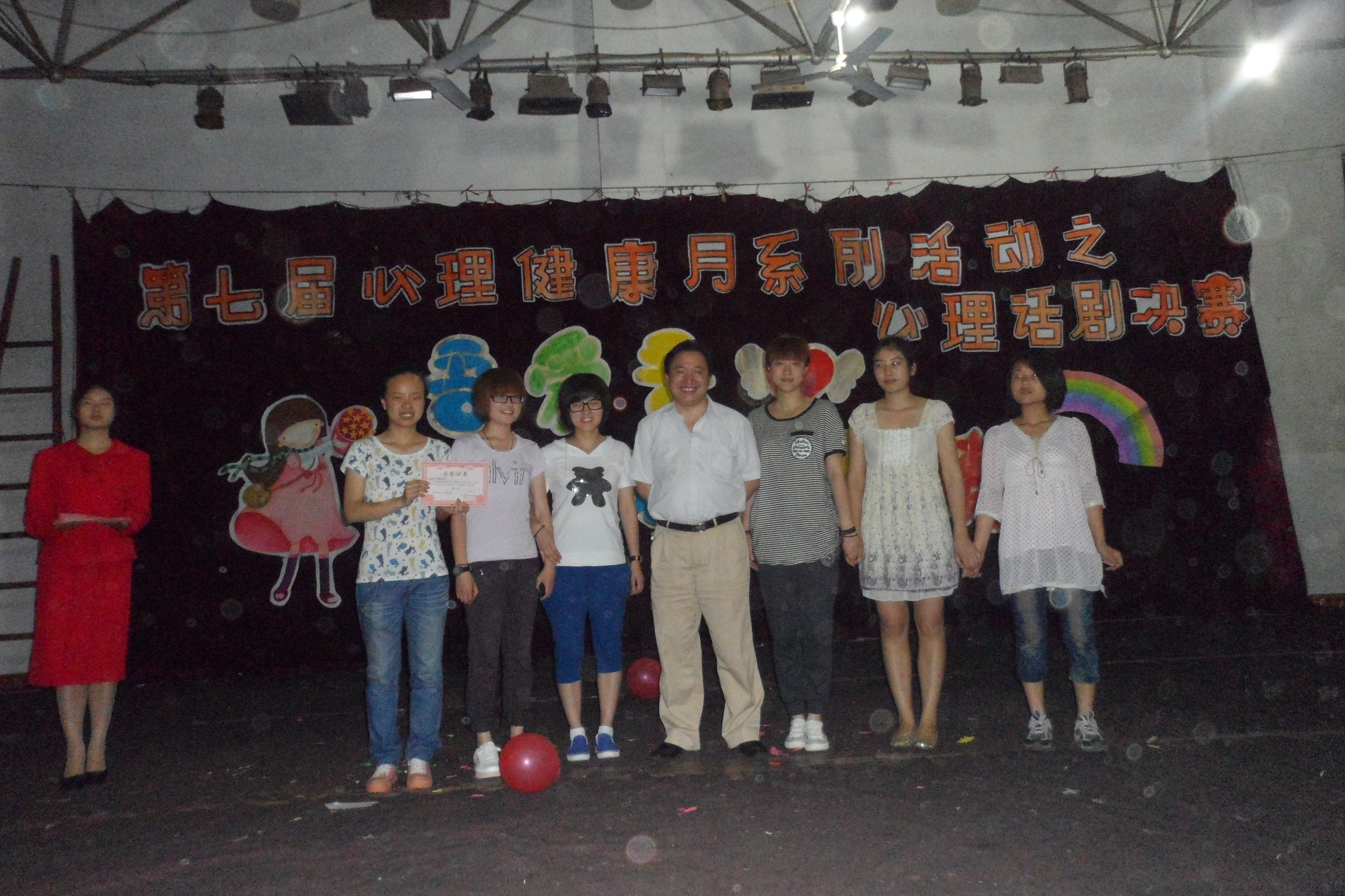 教育学院心理健康月系列活动之心理话剧决赛于2012年5月9日19:30在北校活动中心举行。教育学院党委副书记王伟清。学工办练素华老师、校心理健康部部长李君珍等嘉宾莅临到场。