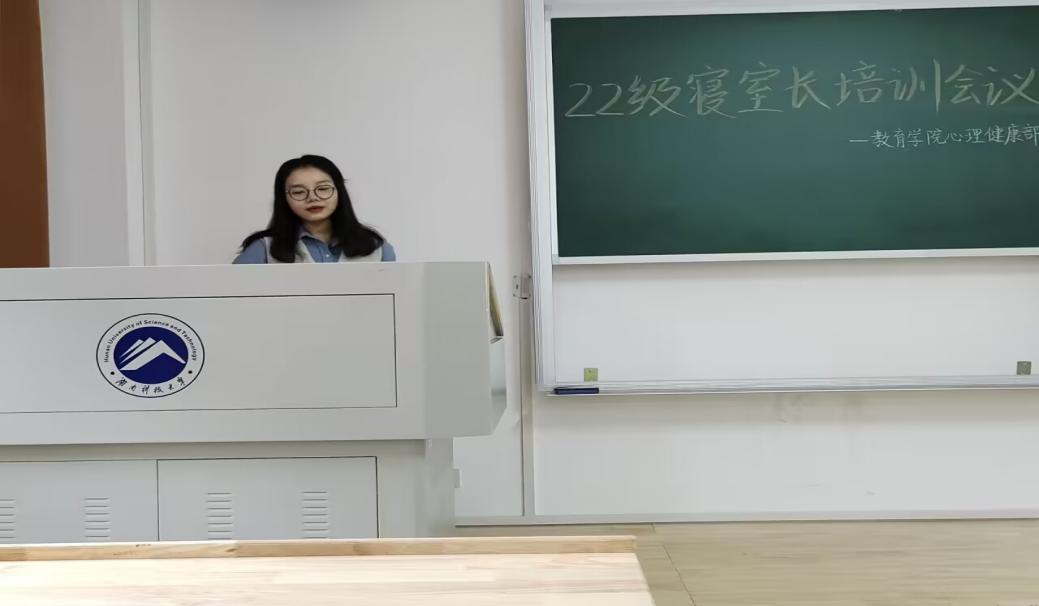 培训伊始,罗贝贝通过一系列数据阐明“你才是最幸运的,我们要悦纳自己”和“每个生命都十分独特”的观点,并就现有的一系列大学校园内常见的精神与心理问题进行分析,其中特别强调抑郁症的症状,阐述了自杀环节中可能出现的自杀线索,以此来帮助寝室长更好地发现异常,阻止悲剧发生。另外,罗贝贝还特意对抗抑郁药物治疗做出解释,疏解学生对药物不良反应的担忧。此后,她针对疫情放开后大部分学生复阳的情况,列举出诸多调解情绪的方法,鼓励寝室长帮助宿舍同学调节情绪,帮助同学们保持积极心态。最后,罗贝贝站在寝室长角度,点明寝室长在日常生活中拥有观察室友心理状态优势,强调寝室长需注意特殊时期、特殊人群,并在面对危机时需要进行及时上报和密切关注,履行寝室长应尽职责,不能放任其发展,让其有自杀倾向者独处,造成不可挽回的后果。