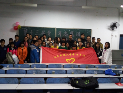 2015年11月20日晚上19点整,湖南科技大学第十三届青年志愿团交接仪式暨培训大会在八教1―2如期举行。教育学院学工办练素华老师、学生会主席张彤、团委学生会副书记徐春菊以及校志愿团及其他学院的兄弟志愿团代表出席了本次大会。