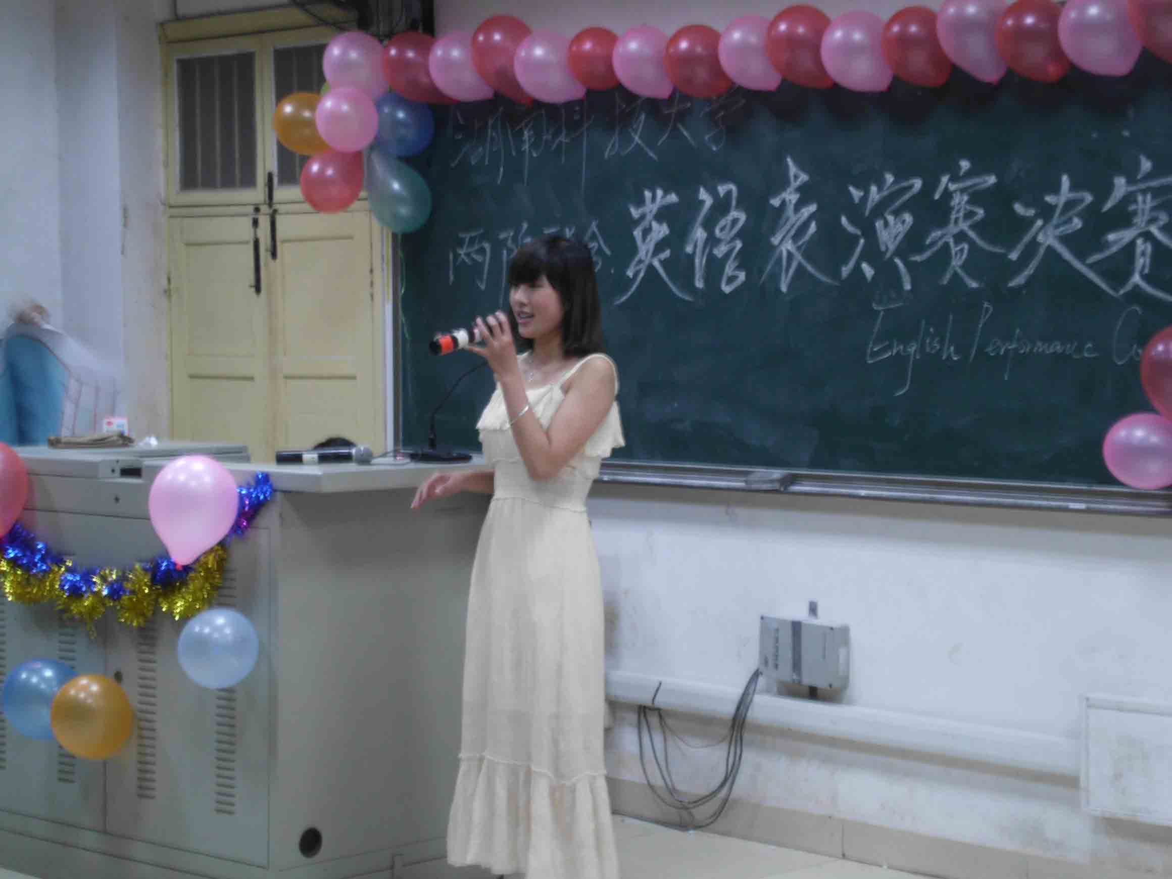 第二轮团体表演中,A组由曾美蓉、陈欢等带来诗歌朗诵《Time to say goodbye》,B组由谭梦梦等带来歌曲串烧,C组由卢萍等表演了《Chinese idol》。最终,我院卢萍及其搭档以《Hello,甄嬛》获得一等奖,易丹、陈欢获得二等奖,曾美蓉、杨欢等获得三等奖。