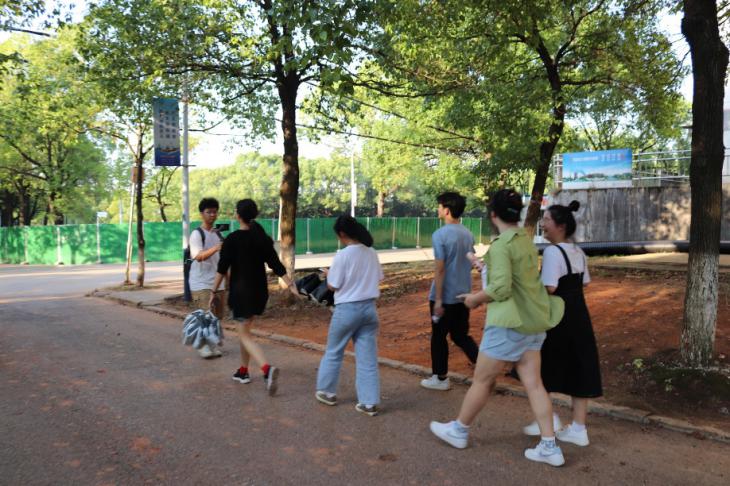 在参观完含笑园后,学风建设部黄雅婷、社团管理部董与佟、广告制作部张慧婷和科技活动部韦泉开始介绍教育学院大本营——第八教学楼。他们带领大家参观了广告制作部、心理健康部等几个比较重要的办公室并讲解了这些办公室的职能,黄雅婷还向大家简单介绍了教育学院的老师们。应新生们的要求,他们带领大家走向了教室,参观学生们学习的地方。之后学生干部们还给大家介绍了北校几个有名的景点,如明湖广场,樱花林以及北校图书馆,张宸堃提到学校曾因有人考试拜孔子像上过微博热搜。镜头绕了一圈后又回到了第八教学楼,并由杨淑雯和田玺如宣布此次直播顺利结束。