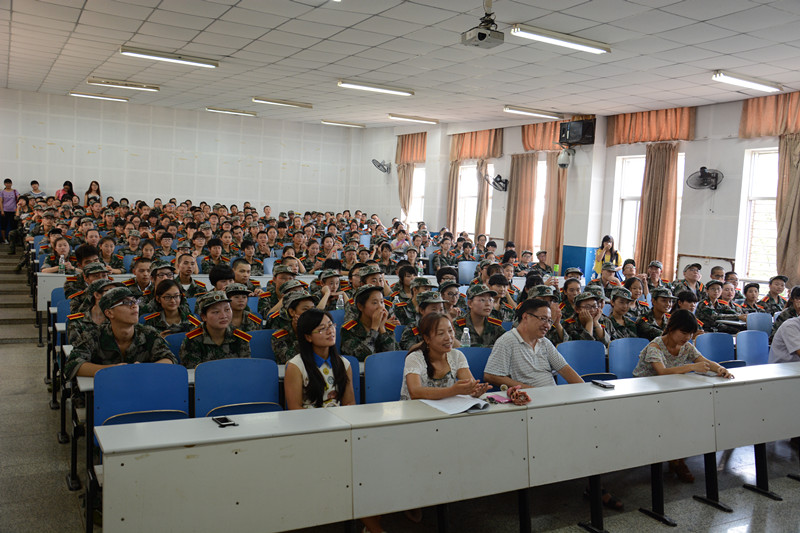 2014年9月8日15:30,教育学院2014级新生军训动员大会在八教2-3举行。参加此次动员大会的有教育学院党委副书记王伟清教授,学工办主任李涛老师、辅导员尹琼芳老师、胡银华老师、练素华老师和滕茜茜老师,以及教育学院14级全体新生及其助理班主任。