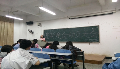 动员大会开始,团委学生会副主席兼组织考核部部长刘一俭对此次迎新晚会的策划内容进行了一一介绍,包括会前人员入场安排,节目统筹,后勤协调,现场秩序,会后统筹五个方面,对各部门人员进行了工作分配,对班级安排组、迎宾接待组、学院接洽组、演员组织组、主持组、宣传组、舞台布置组等组内成员进行了详尽的工作安排,让每个成员对自己负责的工作有明确的认识和了解。特别强调“虽有分工,但希望各位干部能主动去做未完成的事,如有通知,请在第一时间赶到”。