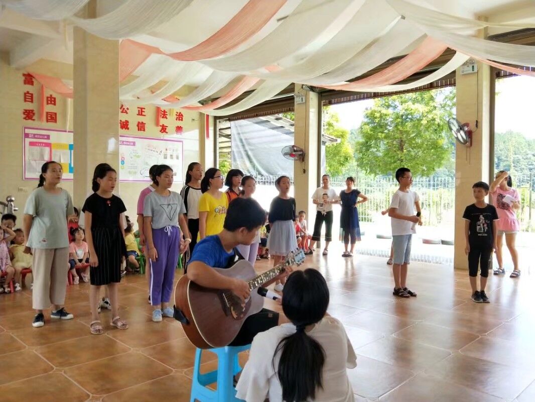 "我们在结束日常的教学活动后,还要为7月31日的文艺汇演准备。孩子们舞蹈课上就学一些要表演的舞蹈。教员在晚饭结束后,就到这里的一个幼儿园排练,一直到21:00才结束。”浏阳支教负责人张敏说。