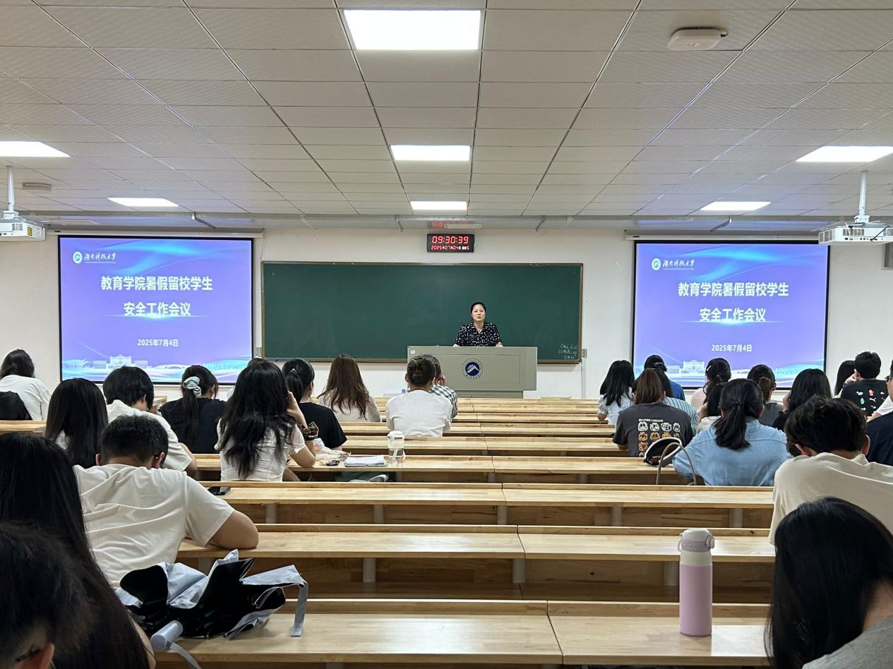 为保障暑期留校学生安全,7月4日,我院在敏行楼C412召开暑假留校学生安全工作会议。教育学院党委副书记文红梅、全体辅导员及暑假留校学生参加会议。