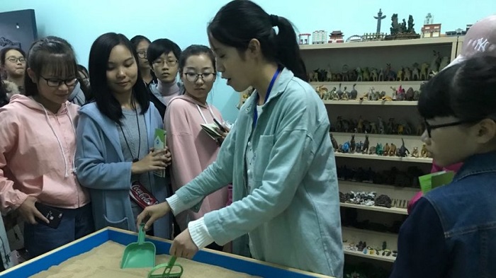 根据安排的时间,同学们在危机干预部成员的组织下在北校心理健康中心门前有序排队,期间校心健成员派发了相关的介绍传单,在班委清点人数后,各班按次序进入活动中心。讲解人员带领大家依次参观并耐心讲解了沙盘模拟室、艺术咨询室以及个体咨询室、团体辅导室等各类特色成长辅导室。其中,同学们对个体咨询室的音乐放松椅和解压游戏十分感兴趣。期间,学工办主任李涛老师也过来和同学们互动交流,让同学们在轻松愉悦的氛围下完成了今天的参观校心健之旅。