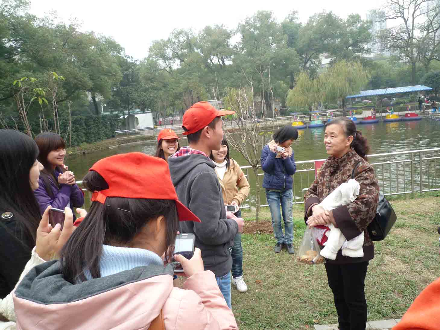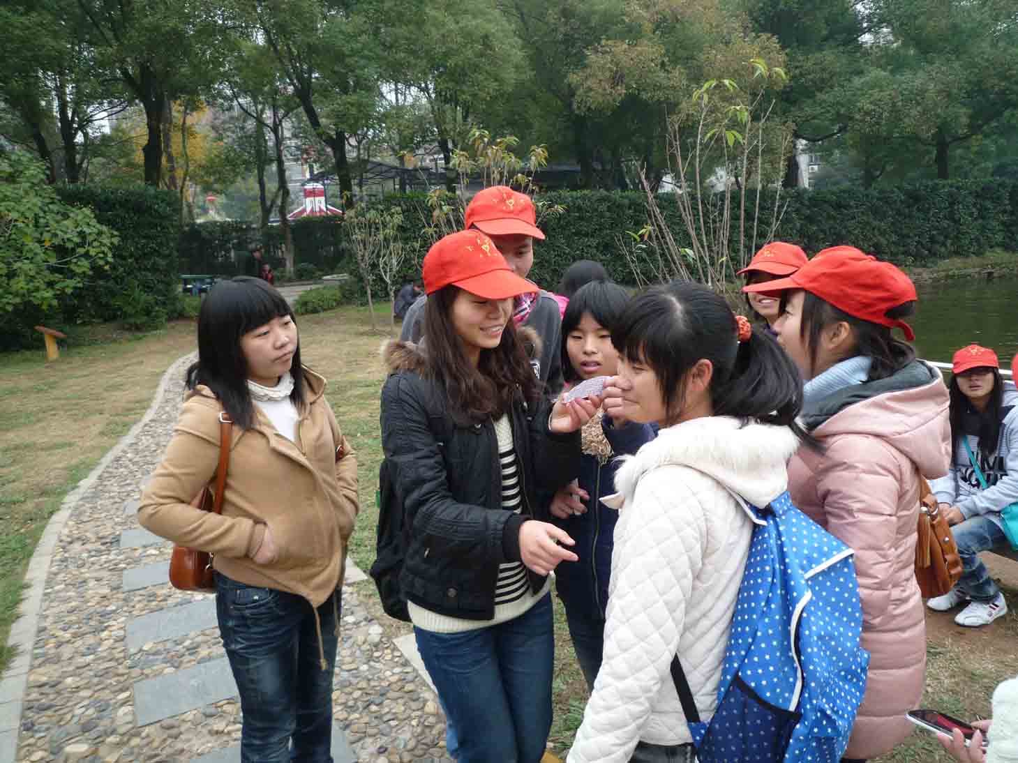 金鱼场有很多游客在喂金鱼时不经意间将装鱼食的小袋子丢到了鱼池里,使水面上小范围覆盖了一层白色的垃圾,队员谭兵、周红燕主动找来渔网将垃圾捞干净并建议管理人员制作小标语,提醒游客注意保持公园卫生。“小红帽”的行为得到了来往游客们的连连赞许,更加激励了大家的热情。