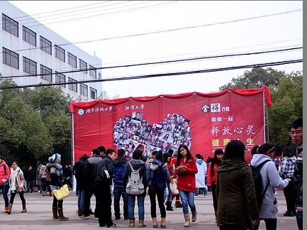 2012年12月11日,在热火朝天的江南style的集体舞蹈后,由湖南科技大学心理健康教育中心联合湘潭大学心理协会主办的“释放心灵,健康人生”活动在我校的北校区电信路口正式举行。此次活动的承办单位有我校的8个学院,教育学院作为主要的承办方之一,可谓做足了功夫:七彩海报的制作、开心笑脸的收集等无不体现着我们的充足准备。