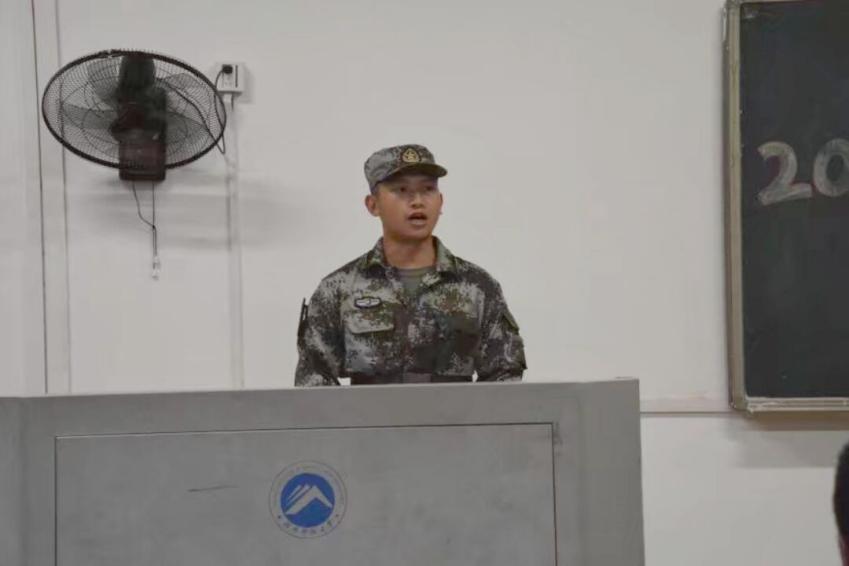 之后,各位教官入场并分别进行自我介绍,连长唐豪杰代表教官发言,他从安全问题、服从命令、组织纪律三个方面进行了演讲,强调军装既是荣誉,更是责任与使命,并祝愿军训任务能够圆满完成。
