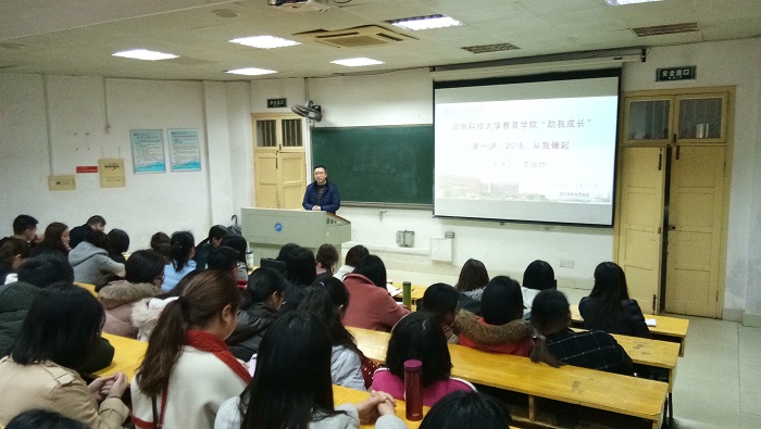 ?2018年3月6日,教育学院在第十教学楼附一楼103室开展"规划人生,上好大学,励志成才"的学生成长辅导新模式——“助我成长第一讲——2018,从我做起,教育学院党委书记李炳煌教授主讲,党委副书记刘辉亚、全体辅导员及教育学院的全体学生党员、全体学生干部参加会议。