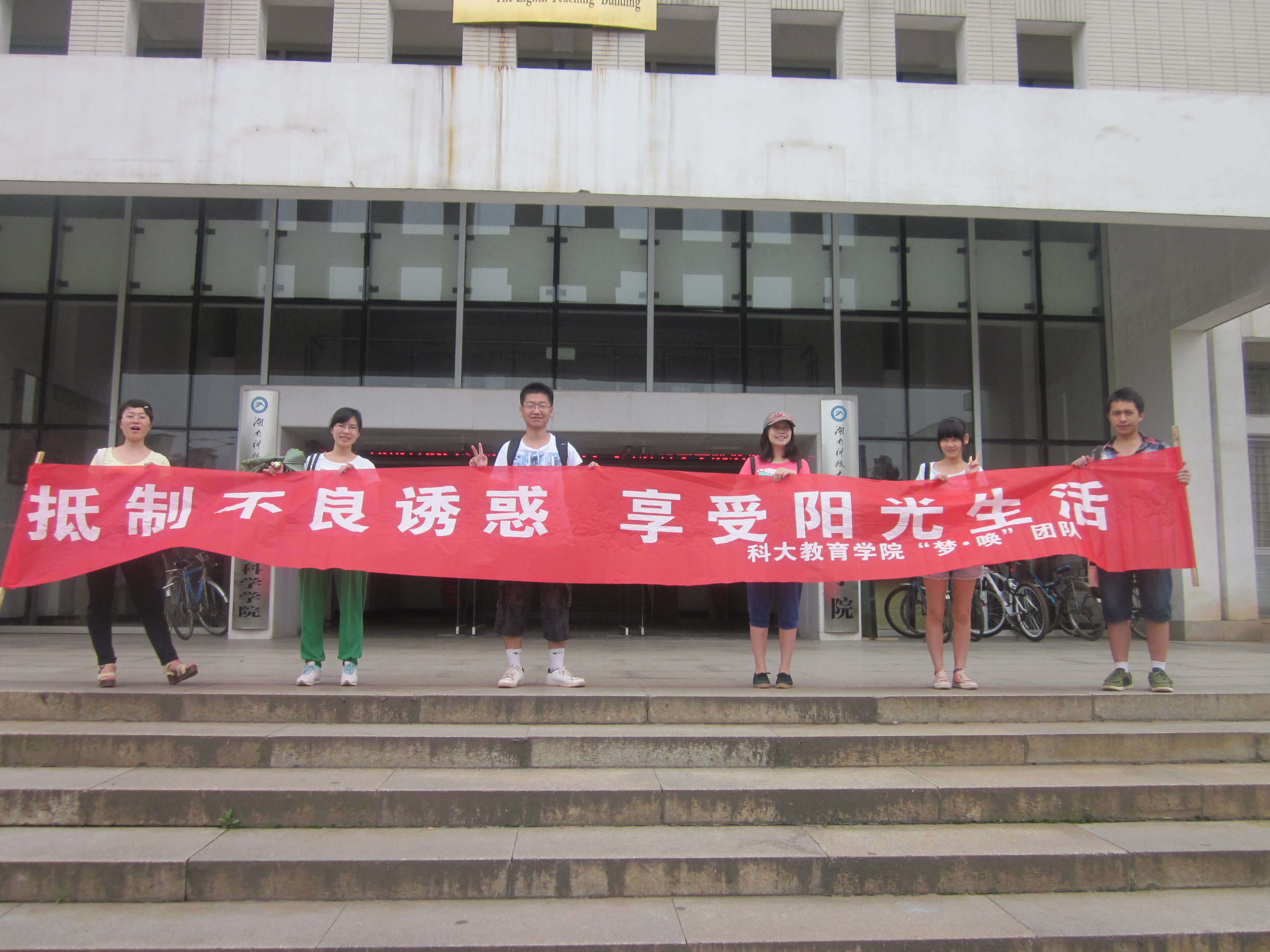 “抵制不良诱惑,享受阳光生活”——教育学院梦?唤团队开展横幅签名活动