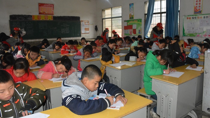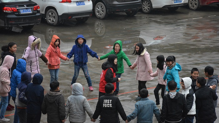 9:20左右双方开始进行合作前情座谈会上,王伟清教授进行前期交流介绍并阐明我们此次志愿活动的目的和任务,以及需要校方配合的具体事项;之后则由校方负责人对在校学生具体情况以及此次参与学生基本情况进行基础介绍。9:45左右技术总监廖文丹同学针对事先布置的调查表进行收集及分发给各主试团训道具;各主试及本组志愿者随班主任到教室与学生见面,由老师简单介绍,主试之间选好各自的组员,则开始正式进入一次性团训的中心环节。团训中通过“爱的抱抱”、“五毛一角”、“有缘相识”等破冰游戏拉近了与孩子们的距离提供契机,并活跃了现场气氛,“解手链”“盲人旅行”这一游戏更是让孩子们体会到了团队协作的重要性。通过观察员场内记录活动线索初步筛选出了疑似重点呵护对象。