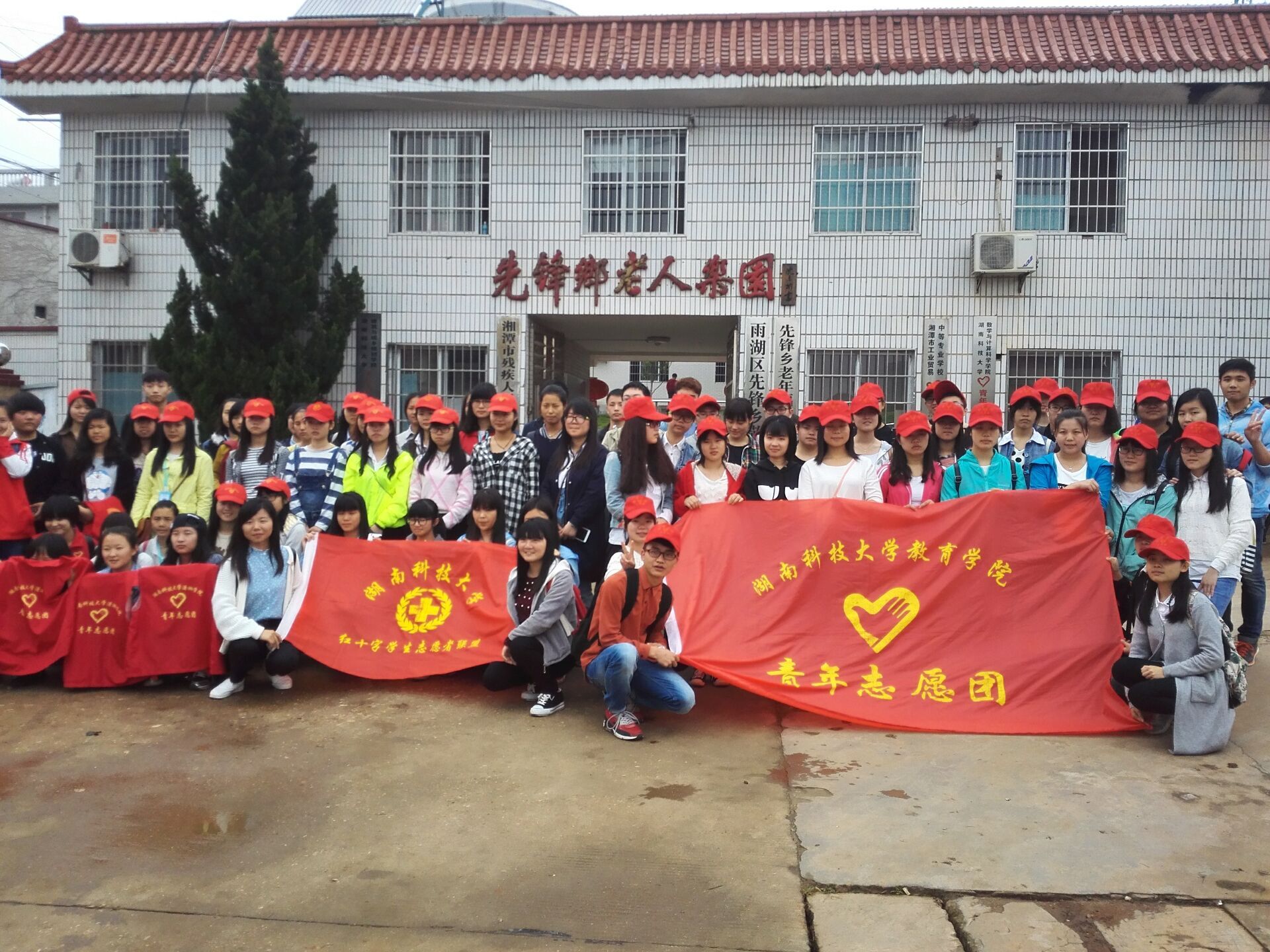 今天早上七点五十集合完毕之后,志愿者们便乘车加步行来到先锋乡老年乐园。来到敬老院才发现,此次的爱心之旅还有湖南科技大学潇湘学院,艺术学院青年志愿团、红十字社团的志愿者。在征得敬老院院长的同意之后,志愿者们纷纷进入敬老院开始志愿活动。因为怕人太多会打扰老人的休息,各学院志愿团负责人一再强调要注意队员和老人的人身安全,注意言谈举止,用礼貌的方式使老人们身心愉悦,让他们感受到温暖。活动中,志愿者们陪老人聊天,拉二胡,下棋等,还帮助老人打扫房。9:20左右,开始表演节目。教育学院负责场外表演,对于一些腿脚不方便的老人,红十字社团的志愿者为老人进行室内节目表演或遵循老人的意愿,陪他们聊聊天就好。经过这段时间的排练,教育学院志愿团共有十三个节目新鲜出炉。有集体舞《青春修炼手册》和《小苹果》、《还珠格格》经典台词串烧、《经典歌曲串烧》,还有各种合唱或独唱歌曲,如《女驸马》、《一个像夏天,一个像冬天》《夫妻双双把家还》等。志愿者们嘹亮的歌声,搞笑的小品给老人们带来了开心的笑容。在表演《还珠格格》时,因为演得太逼真,引得一位老人频频喊表演就表演,不要打人,引得众人哭笑不得,只怪教育学院的志愿者们演技太好啦。