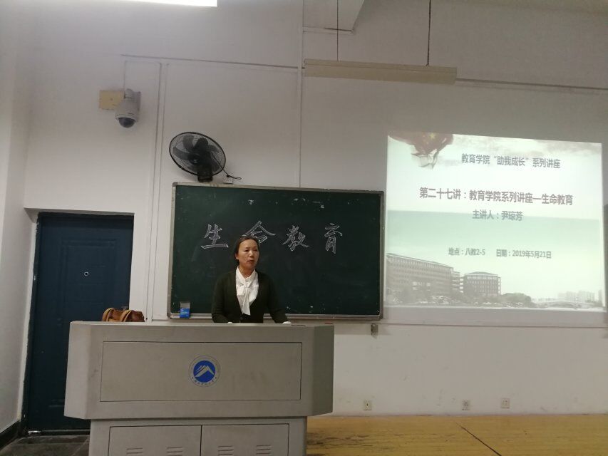 2019年5月21日下午4:30,由教育学院心理健康部主办的“助我成长”系列讲座第二十七讲:生命教育讲座于第八教学楼2―5教室举行。本次讲座由学工办辅导员尹琼芳担任主讲老师,我院全体寝室长与心理委员到场聆听。