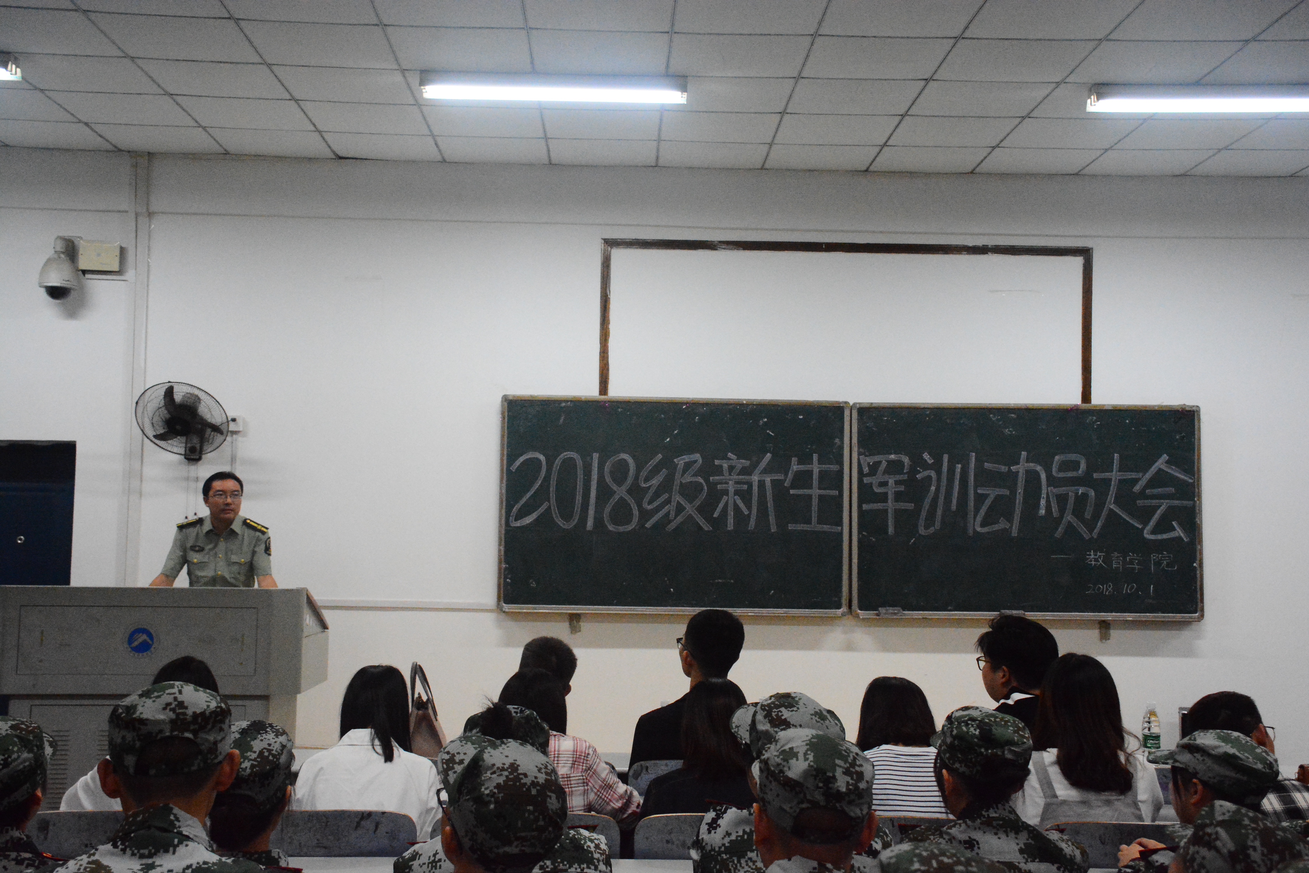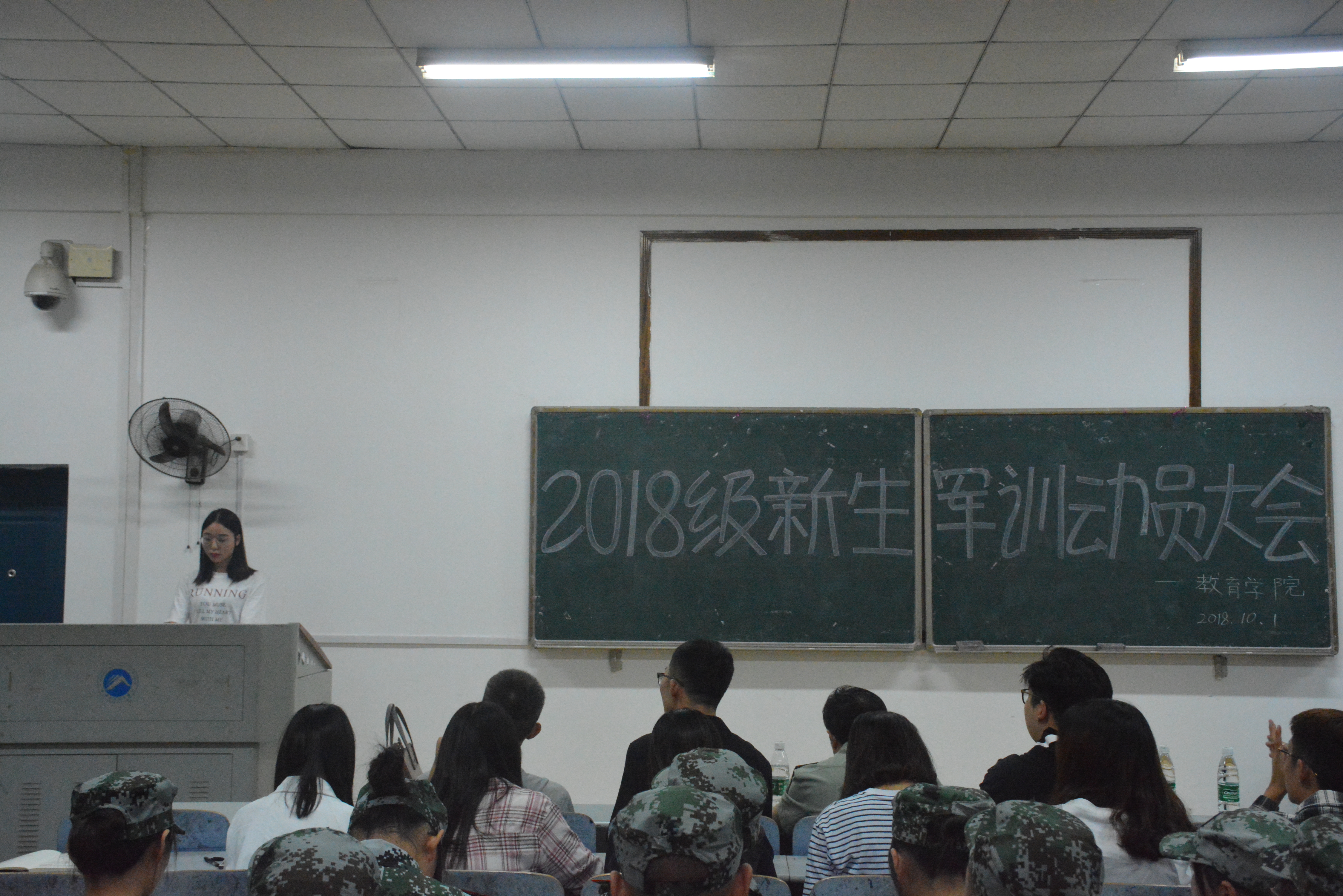 正值国庆佳节,教育学院18级军训动员大会于2018年10月1日19:30在第八教学楼3—3隆重举行。出席本次会议的嘉宾有教育学院党委副书记刘辉亚、14届团委学生会主席袁野、20届团委学生会主席姚中强以及各位18级助班和教官,全体18级新生参与本次会议。大会由18级辅导员练素华老师主持。