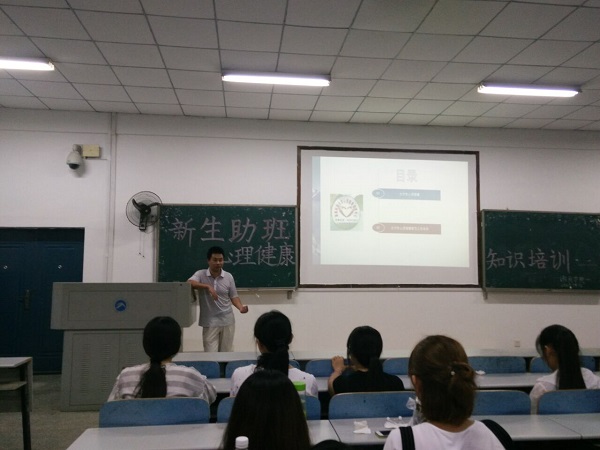 为了更好地迎接新生的到来,帮助16级的同学们适应新的大学生活,2016年9月7日晚19:30在第八教学楼2-3举行心理健康知识培训,主讲人为校心理健康中心主任彭立春博士,院心理辅导员练素华主持,参与成员包括所有2016级新生助理班主任、蹲点党员和迎新志愿者们。